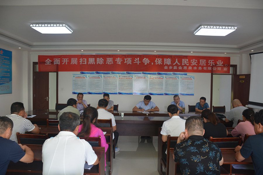 9月4日,金鄉縣金思泉水務有限公司開展“掃黑除惡、勇當先鋒”主題黨日活動。會議由黨委書記蘇文彬主持,全體黨員干部參加。