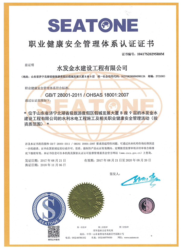 水發金水建設工程有限公司 三體證書-職業