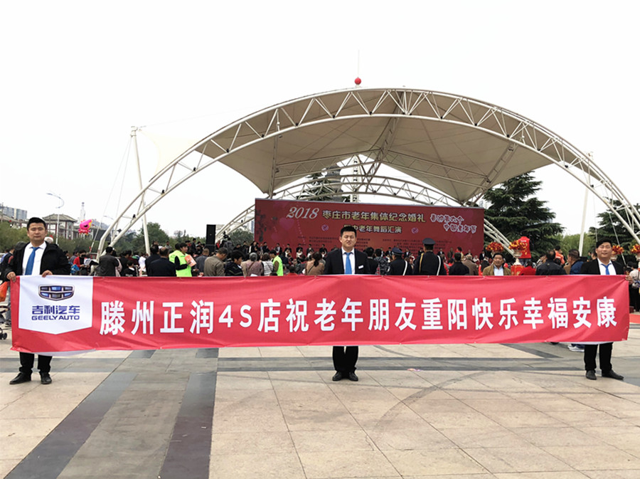 滕州正潤吉利4S店提供了6輛試乘、試駕車作為婚車參加了此次活動(dòng),負(fù)責(zé)接送婚禮老人、體驗(yàn)試乘以及老年車模紀(jì)念留影等。