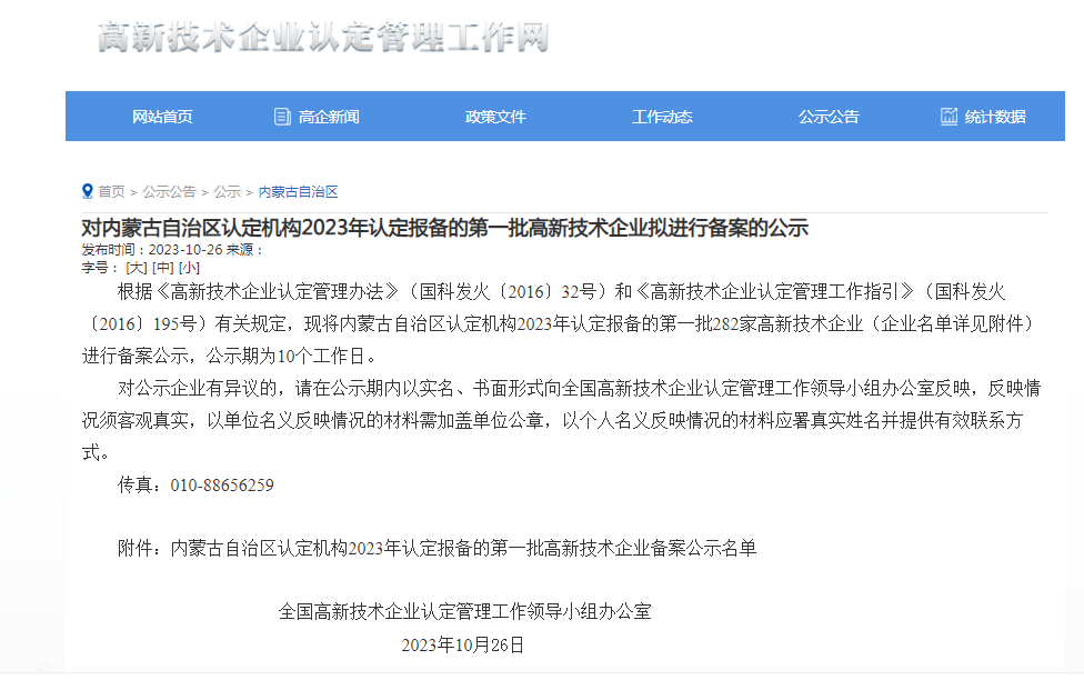 10月26日,根據(jù)《高新技術(shù)企業(yè)認(rèn)定管理辦法》(國(guó)科發(fā)火〔2016〕32號(hào))和《高新技術(shù)企業(yè)認(rèn)定管理工作指引》(國(guó)科發(fā)火〔2016〕195號(hào))有關(guān)規(guī)定,對(duì)內(nèi)蒙古自治區(qū)認(rèn)定機(jī)構(gòu)2023年認(rèn)定的第一批282家高新技術(shù)企業(yè)進(jìn)行公示,內(nèi)蒙古佰惠生新農(nóng)業(yè)科技股份有限公司位列其中。